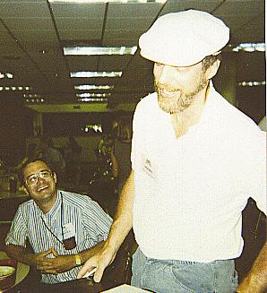 The evening was devoted to the YN auction. While serious numismatic material is offered, and the purpose is serious, the event is one of lightness and humor. Action began at 6pm and continued until 11pm. A number of lots, as soon as they were won by their purchasers, were immediately returned to be auctioned again. Some lots are amusing--for instance, the 100% off-center 1793 error chain cent, a great, although uncertifiable, rarity. At least two men--ANA governor J.T. Stanton and a popular and apparently perennial student named Buddha--sacrificed their beards to consortiums of purchasers, together raising about $4000 for beard clippings. Proceeds from this years auction were estimated to be about $23,000.