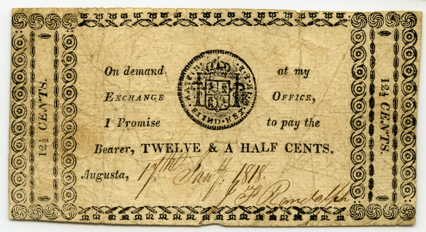 J. P. Randolph Exchange Office, “J. P. Randolph Exchange Office, Georgia, Augusta, 1818, 12 1/2 cents,” Omeka, accessed April 25, 2026, https://oldnote.org/omeka/items/show/255.
