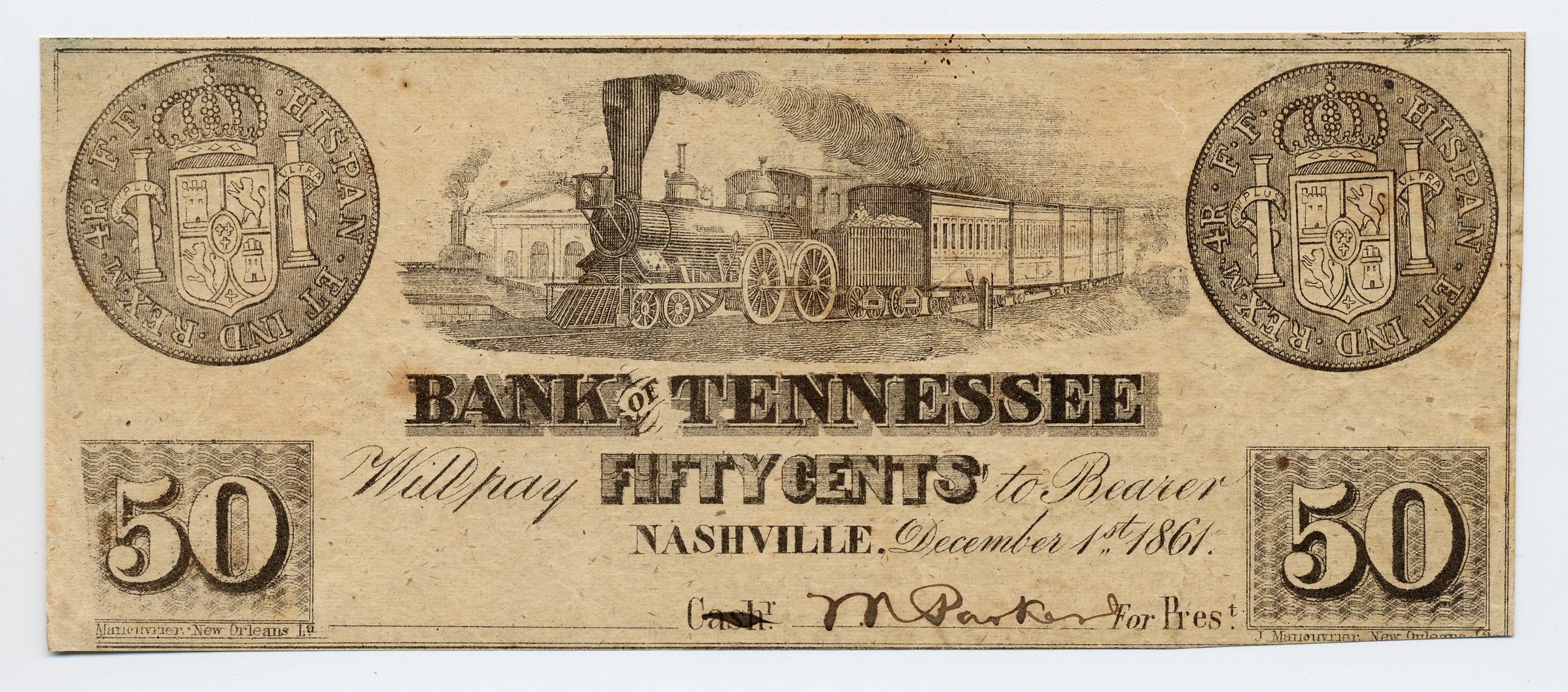 Bank of Tennessee, Nashville, Nashville Branch, “Bank of Tennessee, Nashville, Nashville Branch, Tennessee, Nashville, 1861, 50 cents,” Omeka, accessed April 26, 2026, https://oldnote.org/omeka/items/show/103.