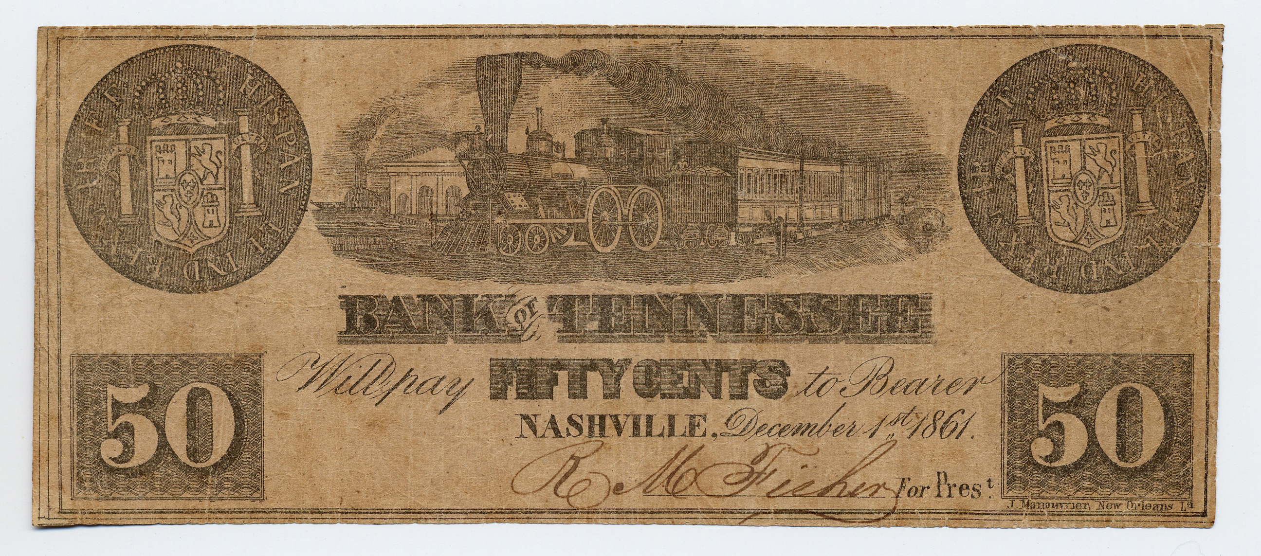 Bank of Tennessee, Nashville, Athens Branch, “Bank of Tennessee, Nashville, Athens Branch, Tennessee, Athens, 1861, 50 cents,” Omeka, accessed April 26, 2026, https://oldnote.org/omeka/items/show/141.