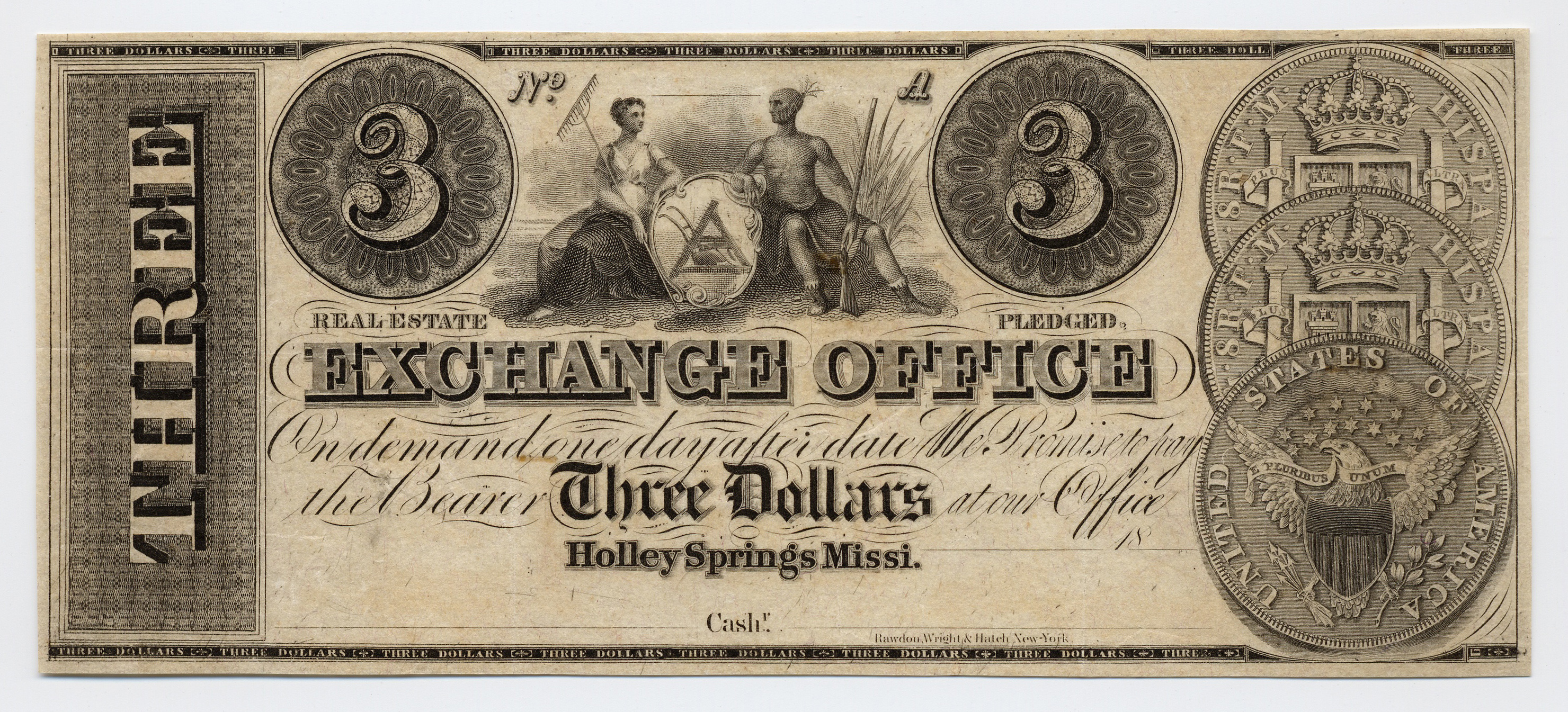 Exchange Office, “Exchange Office, Mississippi, Holley Springs, ?, 3 dollars,” Omeka, accessed April 25, 2026, https://oldnote.org/omeka/items/show/162.