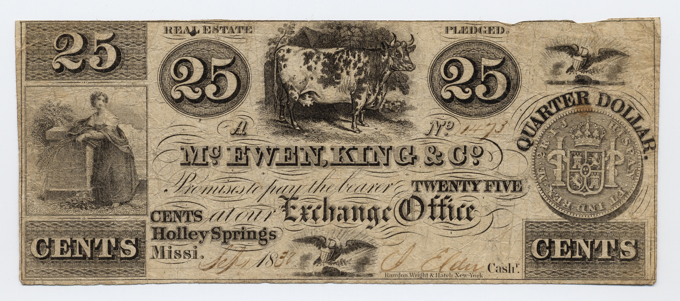 McEwen, King & Co., “McEwen, King & Co., Mississippi, Holley Springs, 1838, 25 cents,” Omeka, accessed April 25, 2026, https://oldnote.org/omeka/items/show/163.