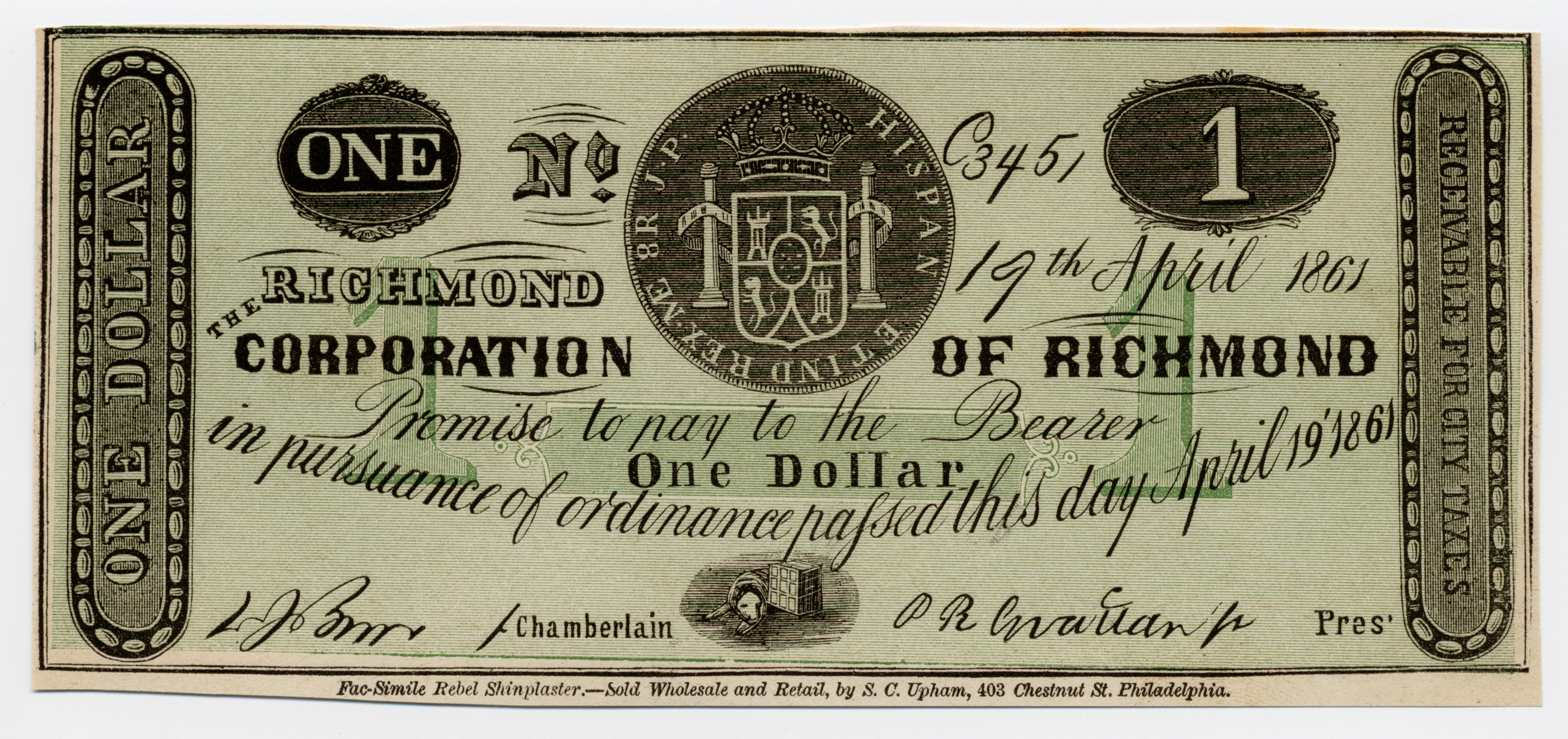Corporation of Richmond, “Corporation of Richmond, Virginia, Richmond, 1861, 1 dollar,” Omeka, accessed April 25, 2026, https://oldnote.org/omeka/items/show/165.
