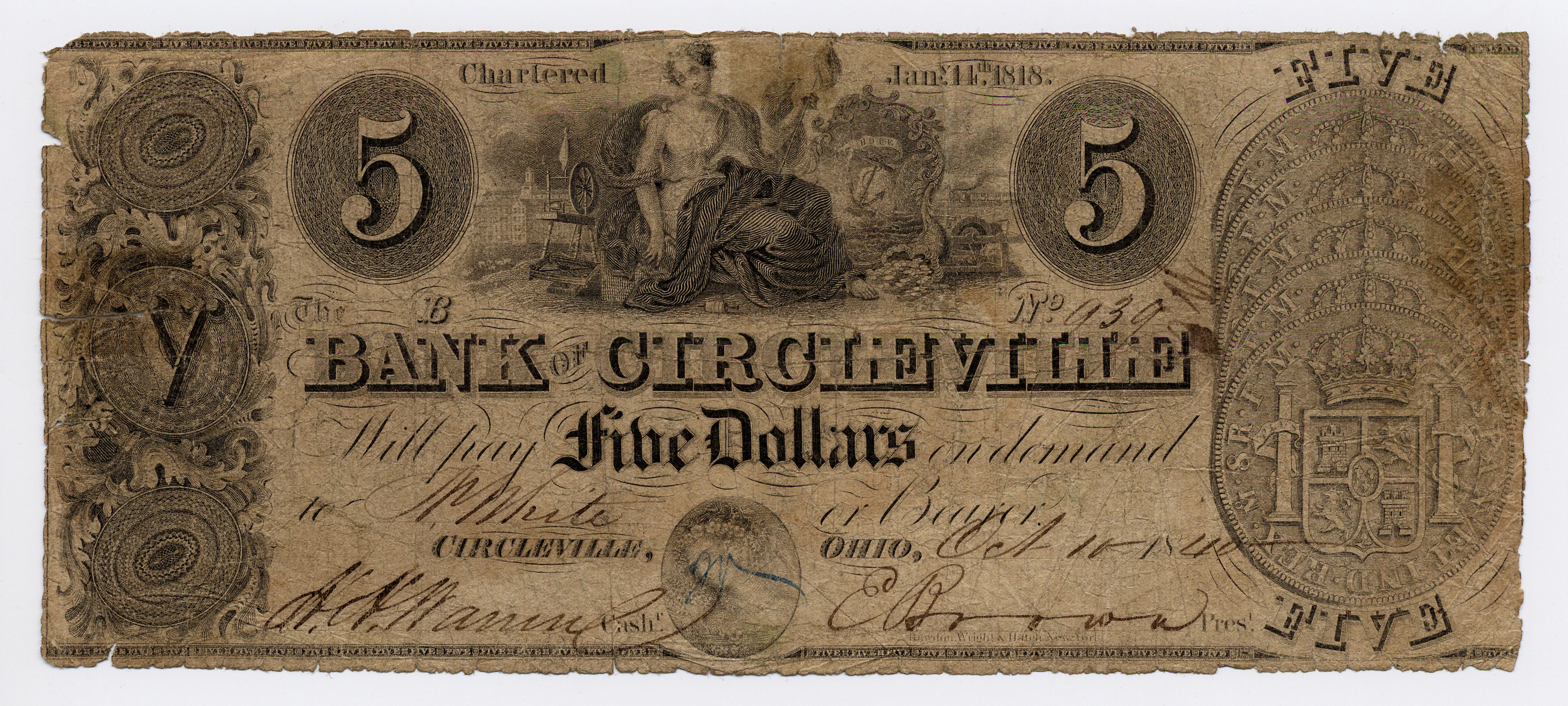 Bank of Circleville, “Bank of Circleville, Ohio, Circleville, 1840, 5 dollars,” Omeka, accessed April 25, 2026, https://oldnote.org/omeka/items/show/190.