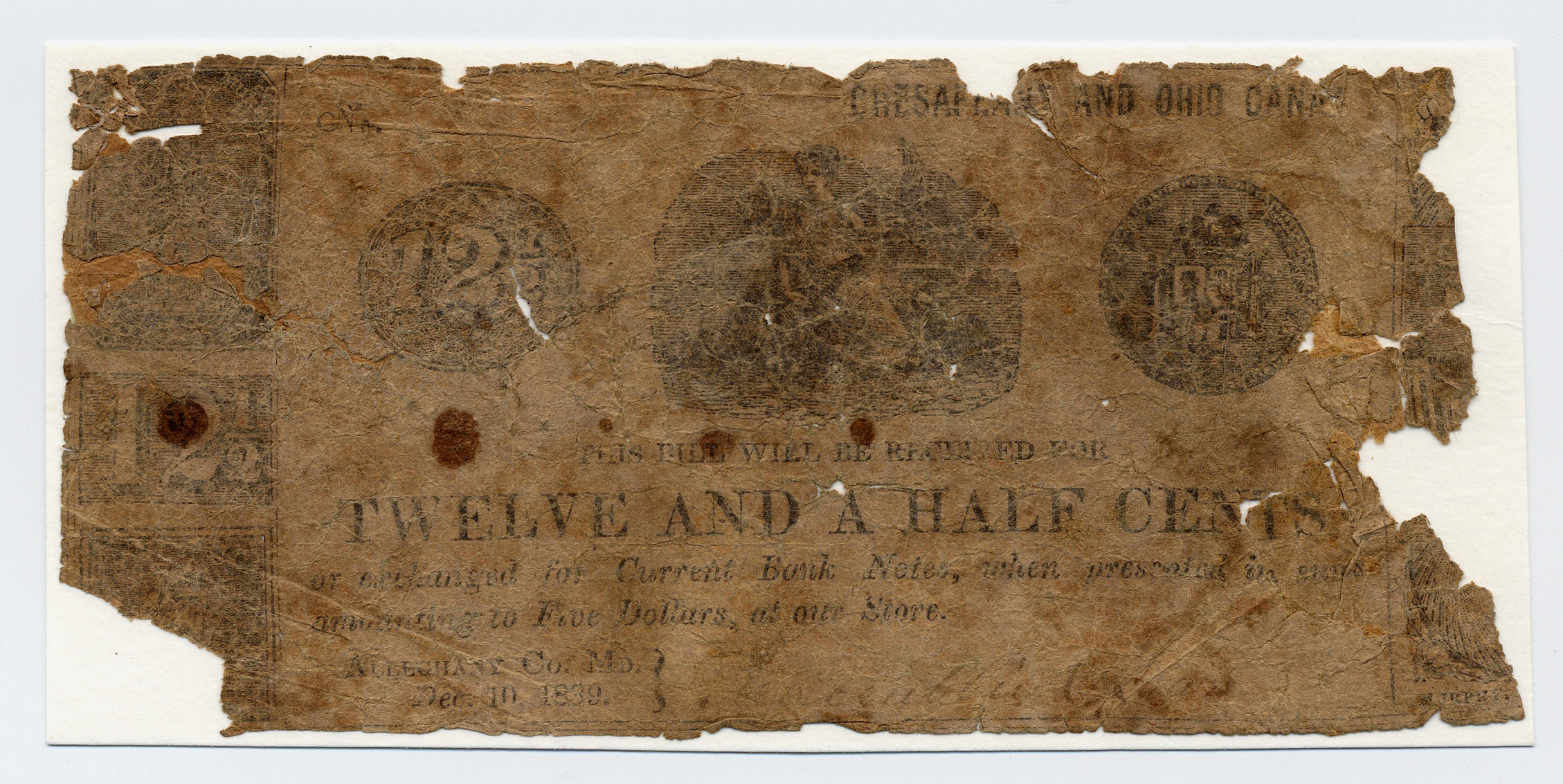 MacCubbin & Lowe, “MacCubbin & Lowe, Maryland, Chesapeake & Ohio Canal, 1839, 12 1/2 cents,” Omeka, accessed April 26, 2026, https://oldnote.org/omeka/items/show/215.