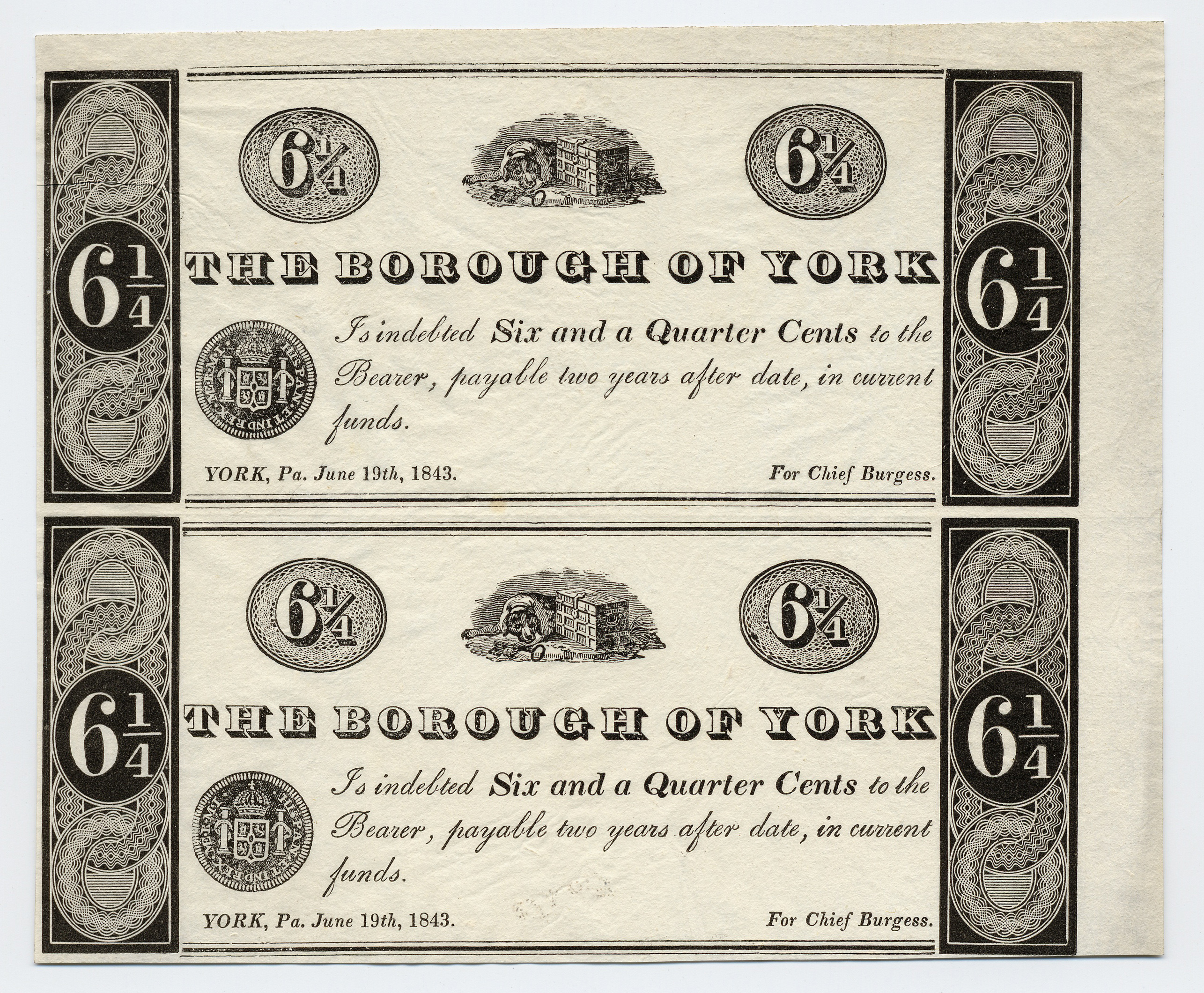 Borough of York, “Borough of York, Pennsylvania, York, 1843, 6 1/4 cents,” Omeka, accessed April 25, 2026, https://oldnote.org/omeka/items/show/221.