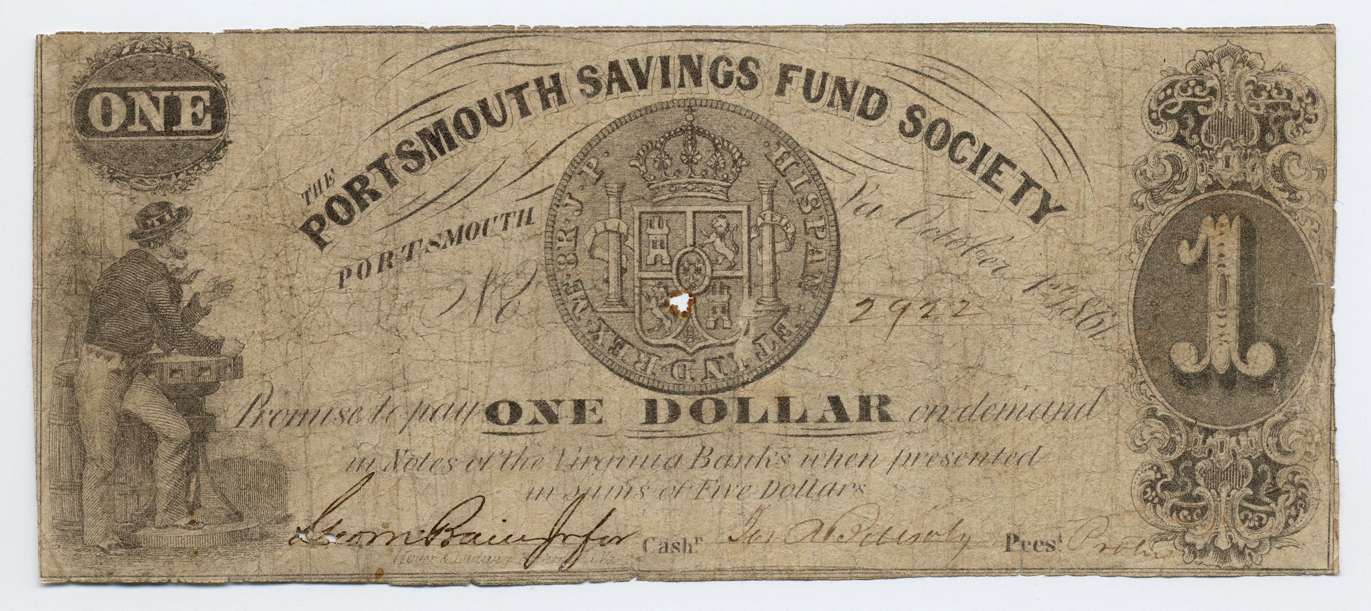 Portsmouth Savings Fund Society, “Portsmouth Savings Fund Society, Virginia, Portsmouth, 1861, 1 dollar,” Omeka, accessed April 25, 2026, https://oldnote.org/omeka/items/show/226.