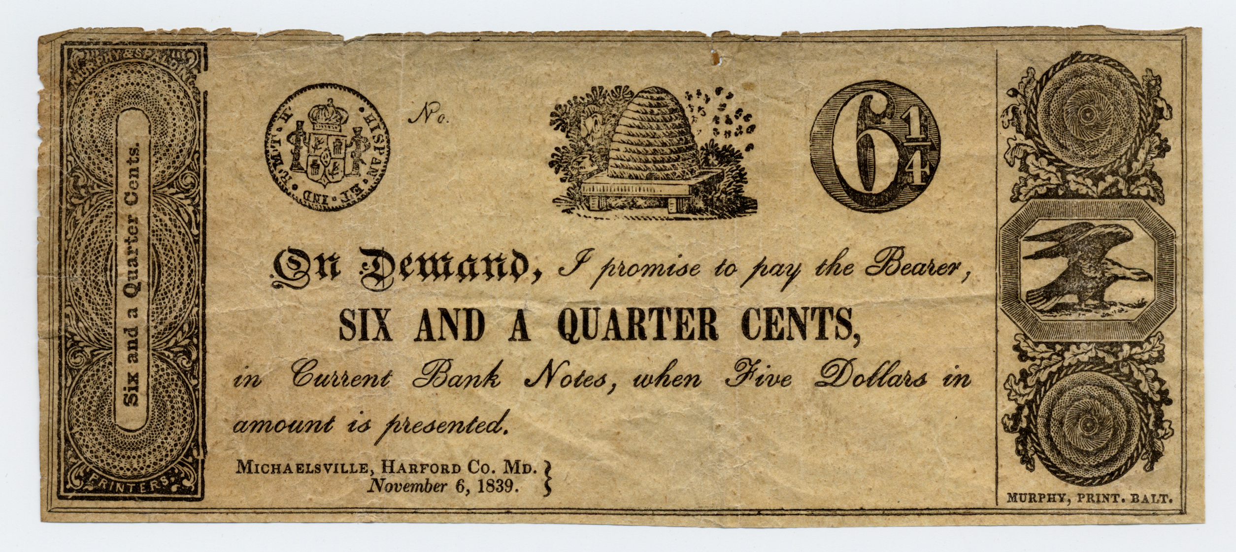 unidentified issuer, Maryland, Michaelsville, 1839, 6 1/4 cents