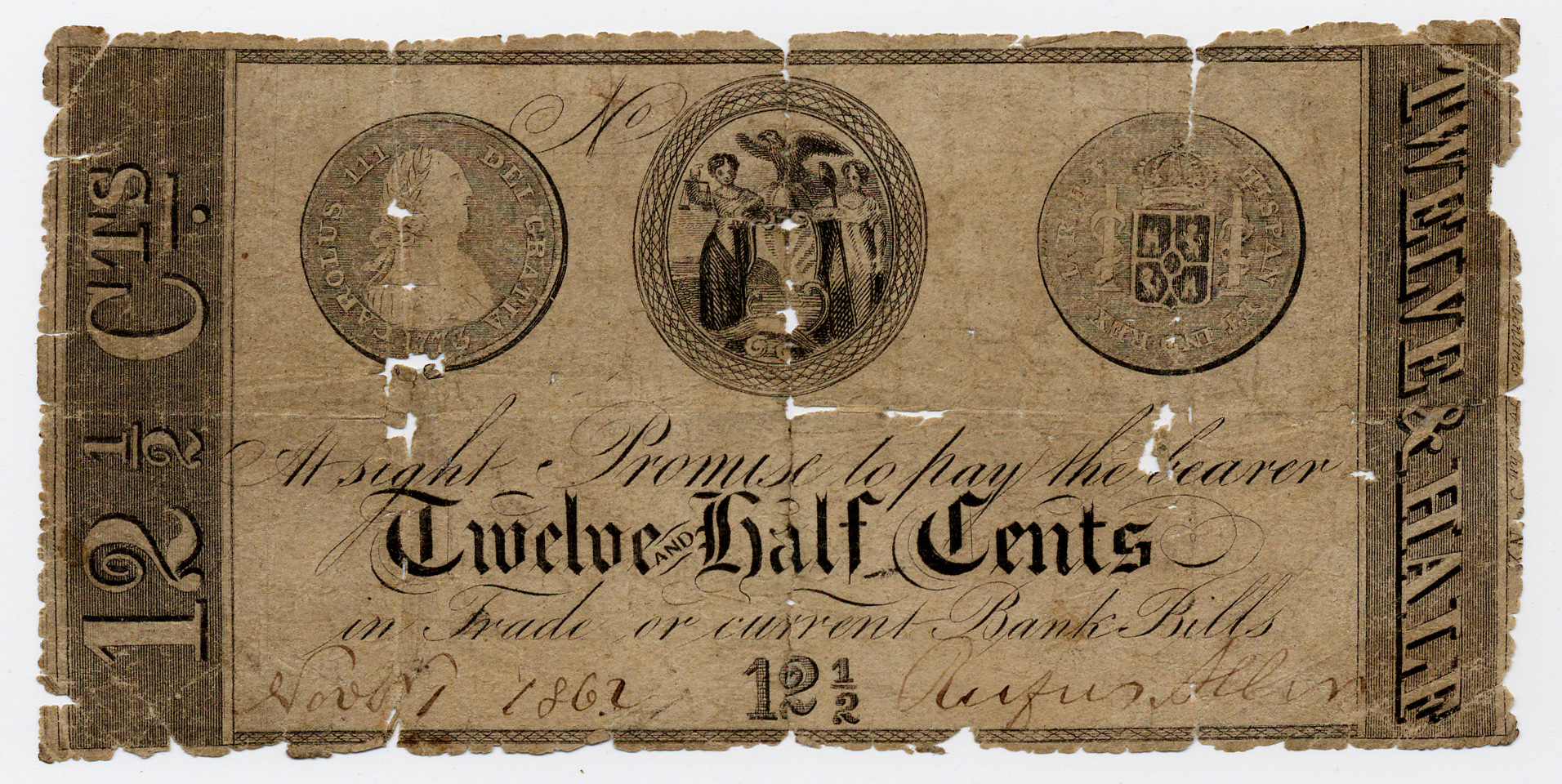 Rufus Allen, “Rufus Allen, New York, NYC ?, 1862, 12 1/2 cents,” Omeka, accessed April 25, 2026, https://www.oldnote.org/omeka/items/show/242.
