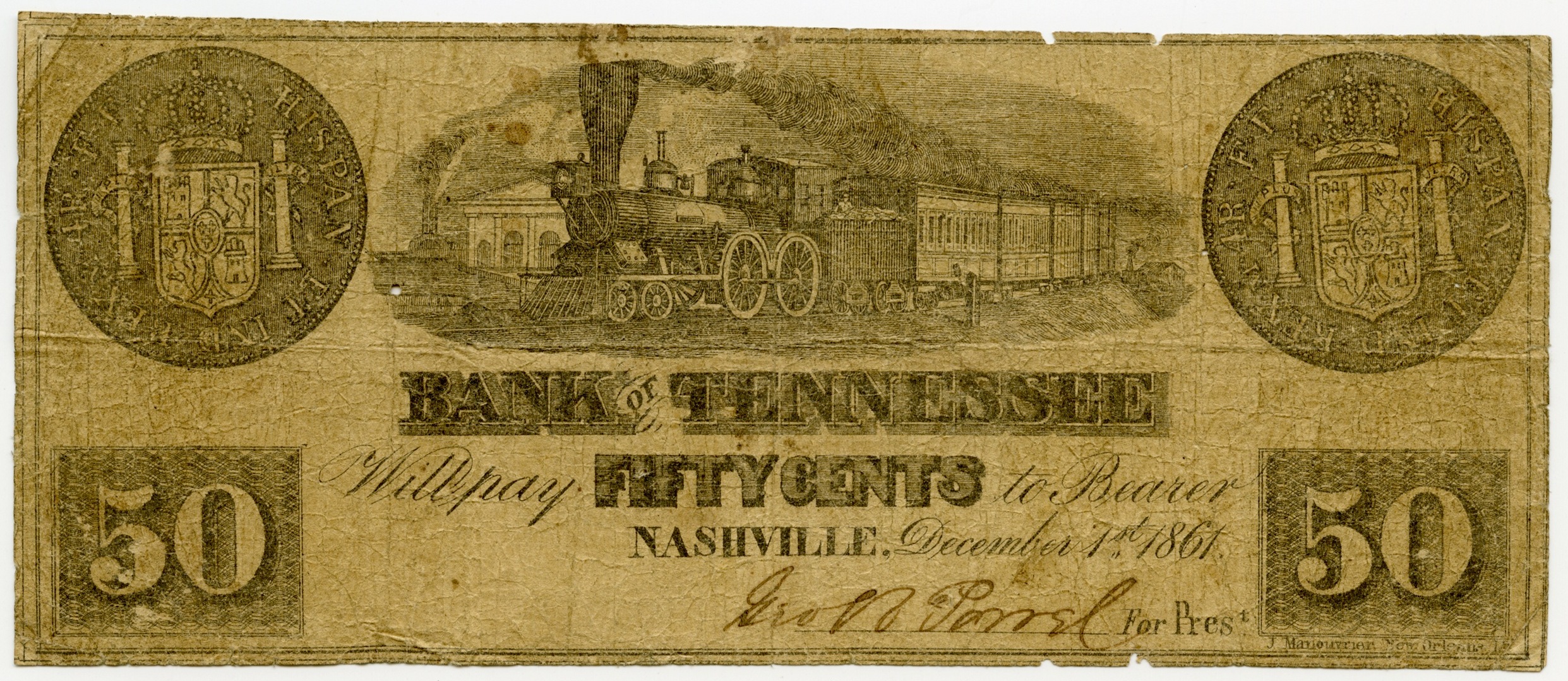Bank of Tennessee, Nashville, Rogersville Branch, “Bank of Tennessee, Nashville, Rogersville Branch, Tennessee, Rogersville, 1861, 50 cents,” Omeka, accessed April 25, 2026, https://oldnote.org/omeka/items/show/254.
