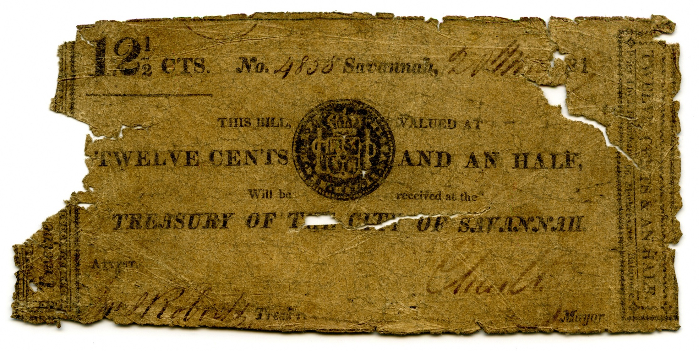 City of Savannah, “City of Savannah, Georgia, Savannah, 1821, 12 1/2 cents,” Omeka, accessed April 25, 2026, https://oldnote.org/omeka/items/show/258.