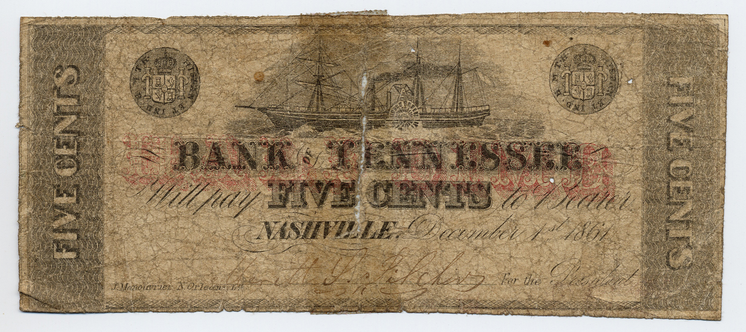 Bank of Tennessee, Nashville, Nashville Branch, “Bank of Tennessee, Nashville, Nashville Branch, Tennessee, Nashville, 1861, 5 cents,” Omeka, accessed April 25, 2026, https://oldnote.org/omeka/items/show/59.