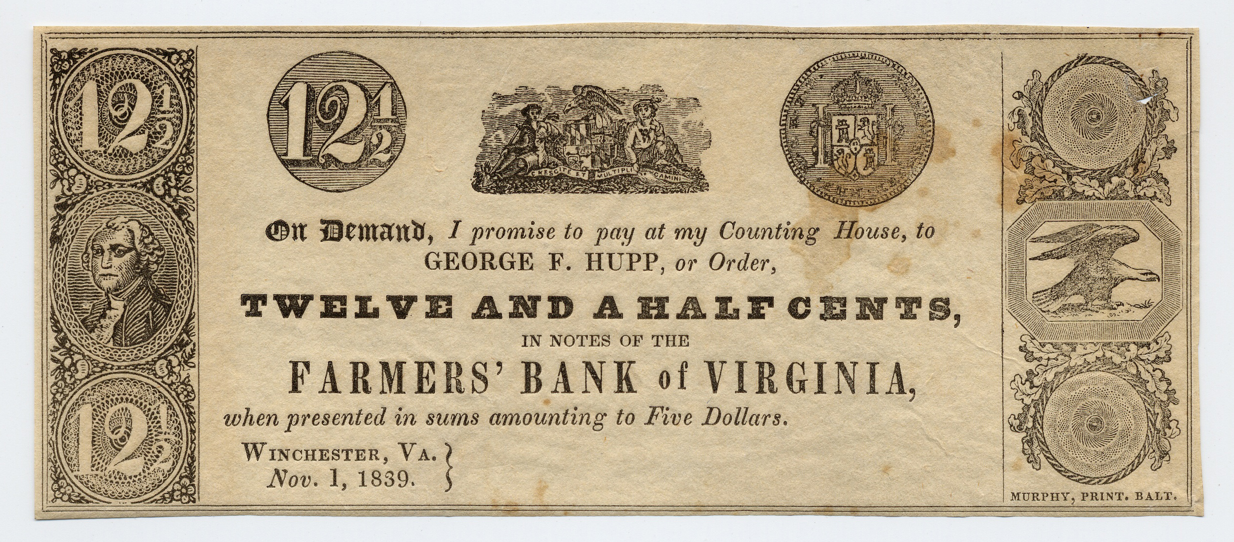 Counting House, “Counting House, Virginia, Winchester, 1839, 12 1/2 cents,” Omeka, accessed April 25, 2026, https://oldnote.org/omeka/items/show/61.