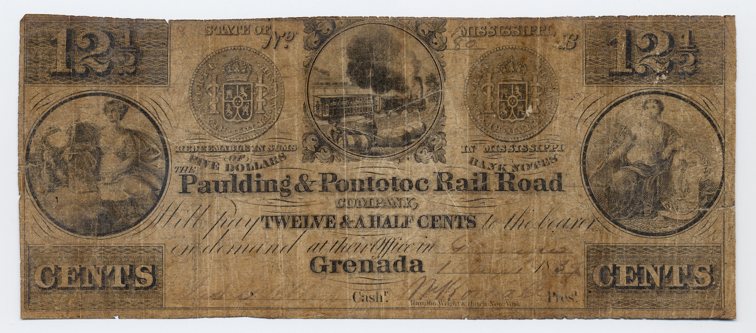Paulding & Pontotoc RR, “Paulding & Pontotoc RR, Mississippi, Grenada, 1839, 12 1/2 cents,” Omeka, accessed April 26, 2026, https://www.oldnote.org/omeka/items/show/112.