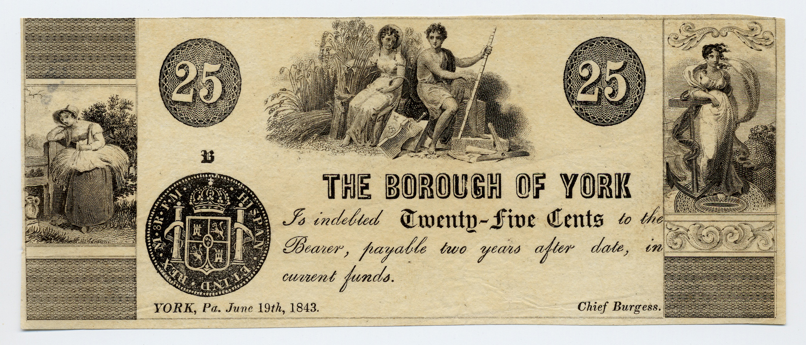 Borough of York, Pennsylvania, York, 1843, 25 cents
