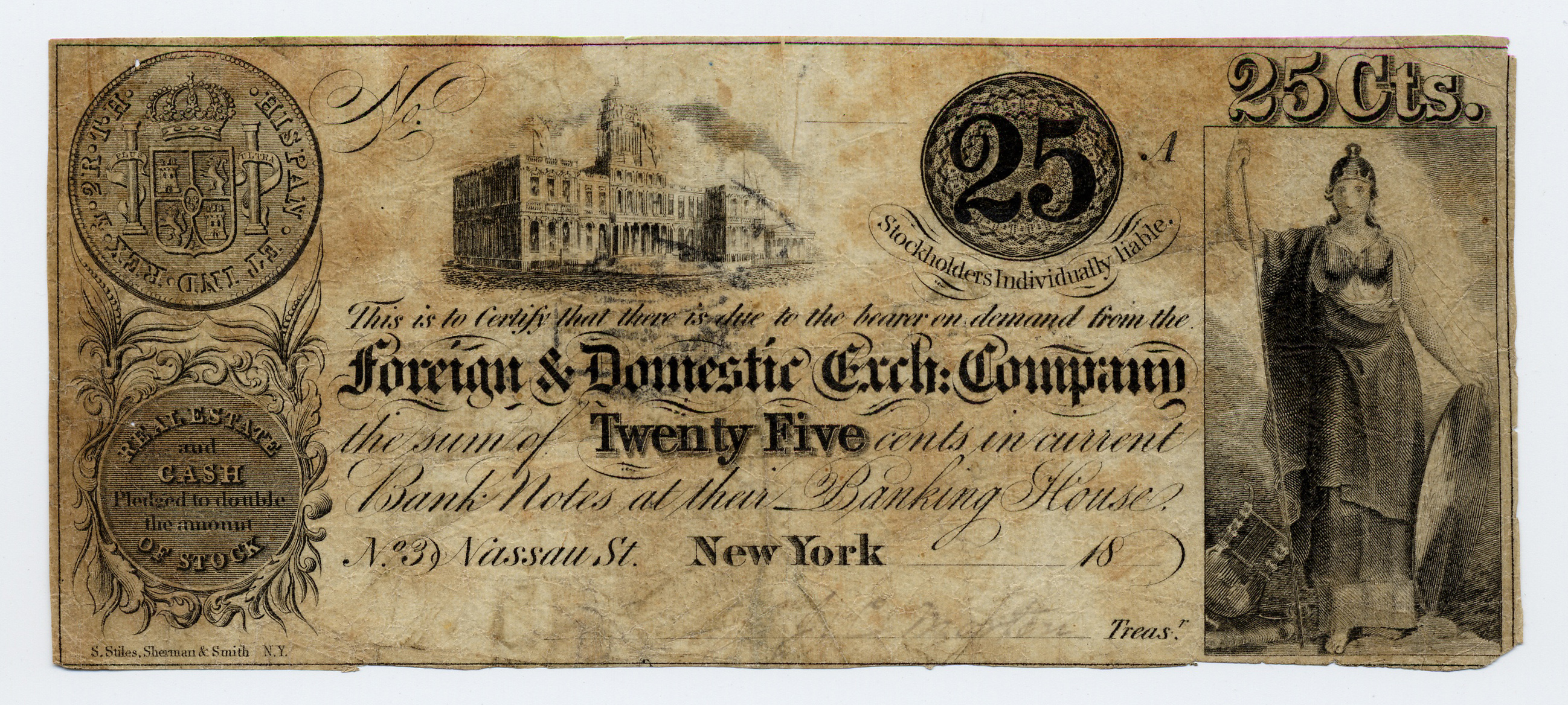 Foreign & Domestic Exchange Company, “Foreign & Domestic Exchange Company, New York, NYC, ?, 25 cents,” Omeka, accessed April 26, 2026, https://www.oldnote.org/omeka/items/show/200.