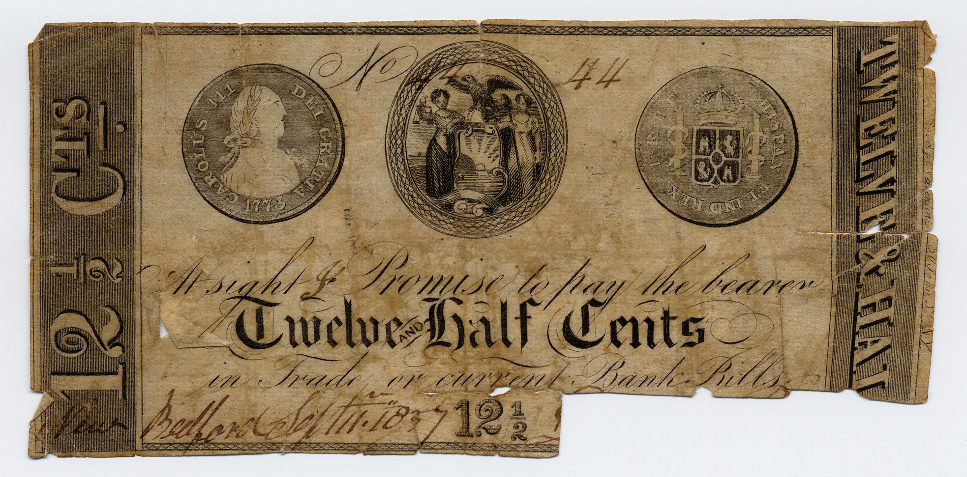 unidentified issuer, “unidentified issuer, Massachusetts, New Bedford, 1837, 12 1/2 cents,” Omeka, accessed April 25, 2026, https://www.oldnote.org/omeka/items/show/202.