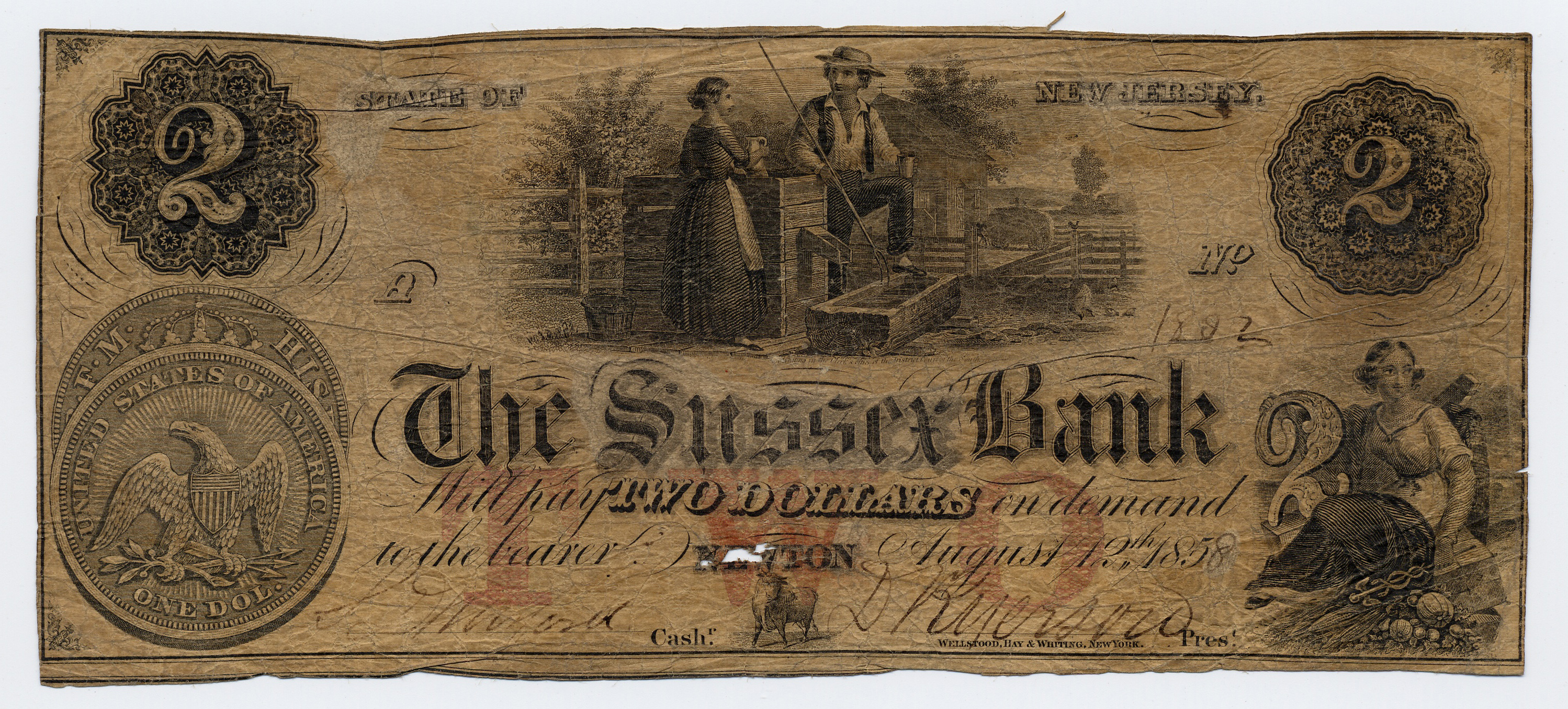 Sussex Bank, “Sussex Bank, New Jersey, Newton, 1858, 2 dollars,” Omeka, accessed April 25, 2026, https://www.oldnote.org/omeka/items/show/237.