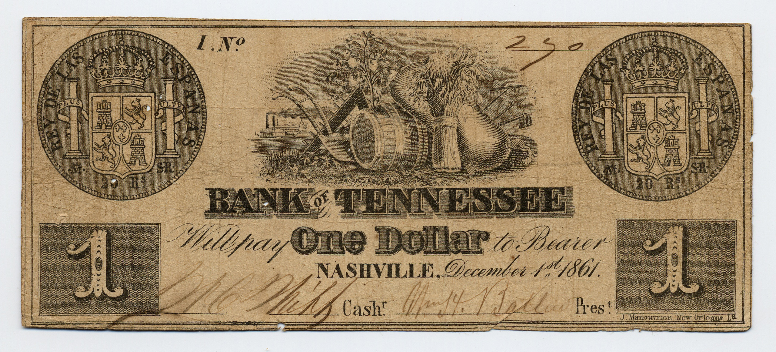 Bank of Tennessee, Nashville, Athens Branch, “Bank of Tennessee, Nashville, Athens Branch, Tennessee, Athens, 1861, 1 dollar,” Omeka, accessed April 25, 2026, https://www.oldnote.org/omeka/items/show/69.