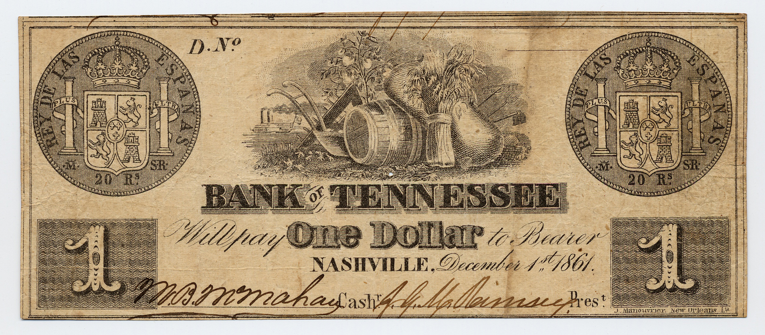Bank of Tennessee, Nashville, Nashville Branch, “Bank of Tennessee, Nashville, Nashville Branch, Tennessee, Knoxville, 1861, 1 dollar,” Omeka, accessed April 25, 2026, https://www.oldnote.org/omeka/items/show/71.