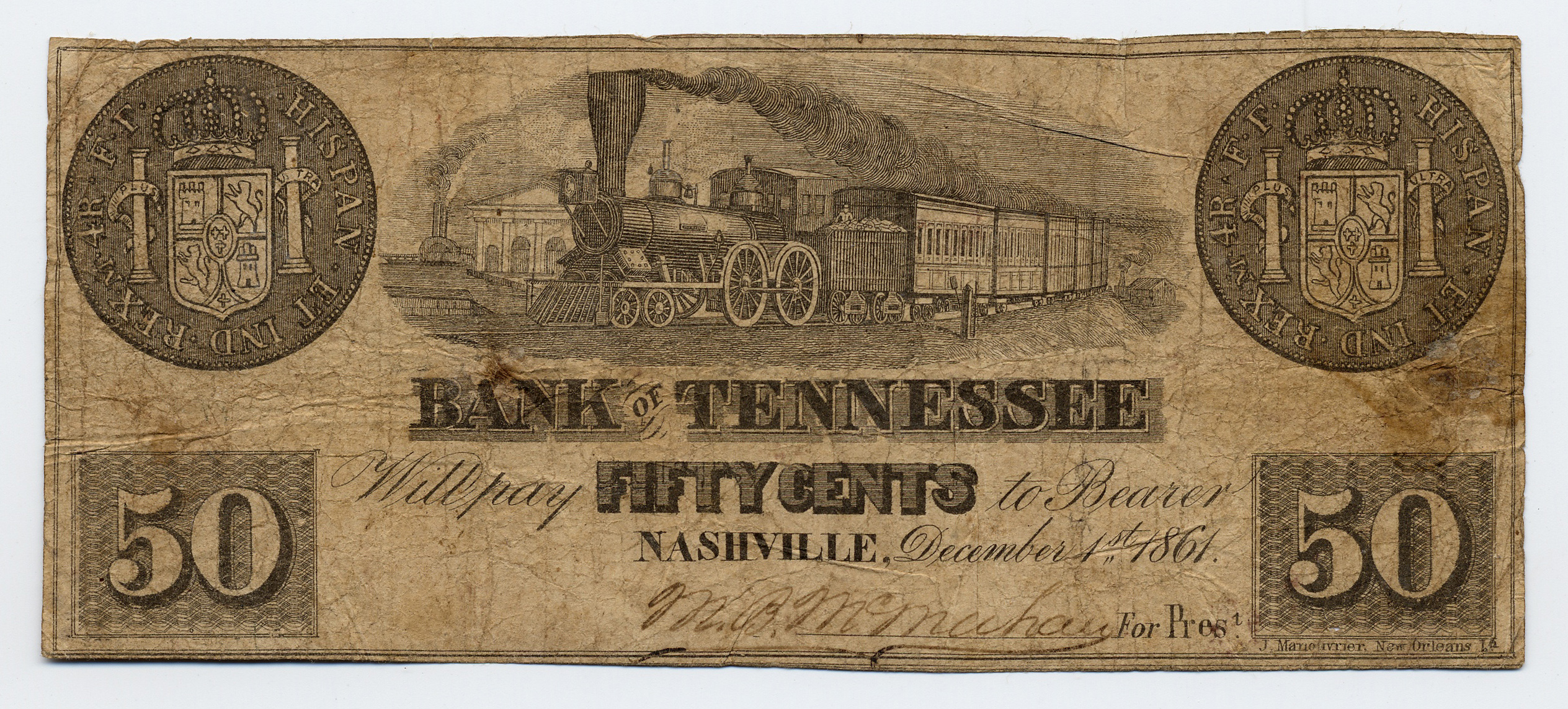 Bank of Tennessee, Nashville, Knoxville Branch, “Bank of Tennessee, Nashville, Knoxville Branch, Tennessee, Knoxville, 1861, 50 cents,” Omeka, accessed April 25, 2026, https://www.oldnote.org/omeka/items/show/86.